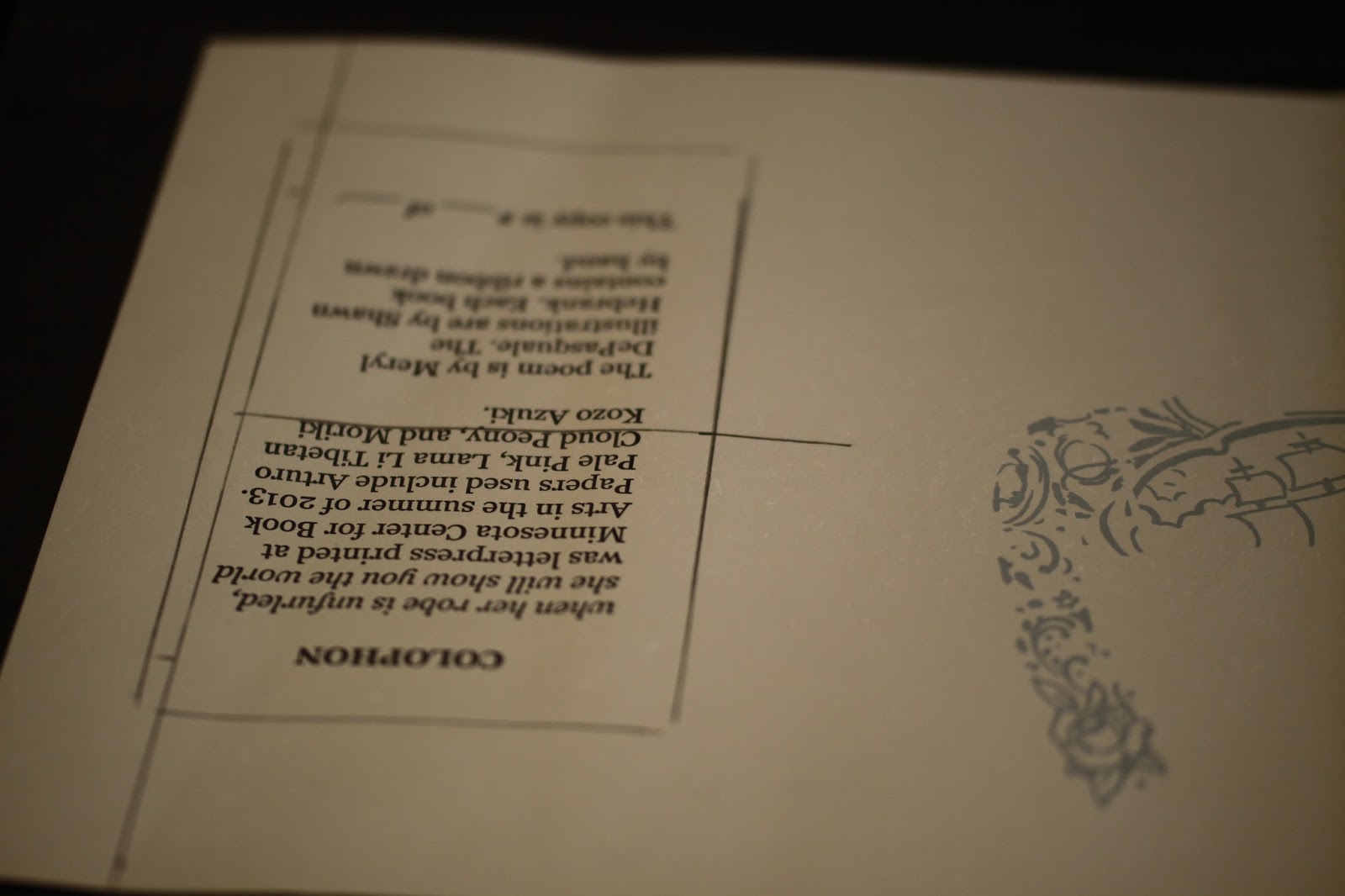 I'm proud of her and I have a crush on her tattooed lady. She's pretty amazing--both in illustration and in the poem. This book is a part of the Minnesota Center for Book Arts' Parts of a Whole exhibit, which opens Friday, August 16th. It's a small run, so I've asked her to please hold a copy aside for me, and I'm looking forward to this excellent piece to add to my small but growing collection.
